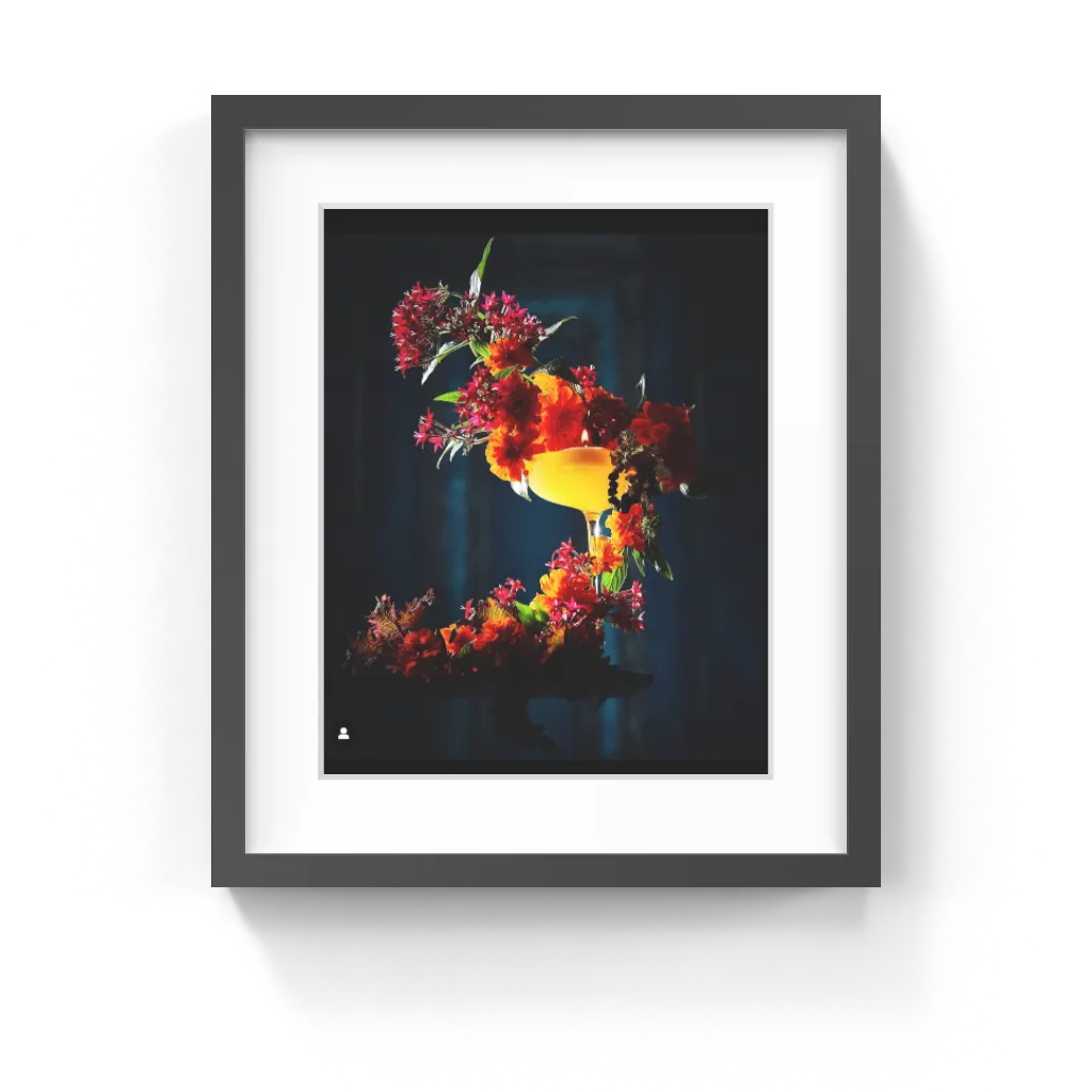 This cocktail is the ultimate statement piece. She is bold and beautiful, enveloped in flowers with a floating candle. All prints include a Certificate Of Authenticity, signed by the artists, Chriscilla and Daniel.