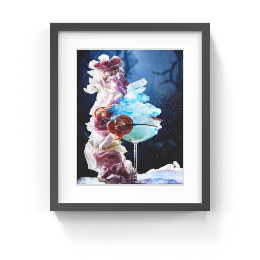Overflowing with rose blooms and ice this cocktail has a majestic quality that is both pleasing and mysterious to the eye. All prints include a Certificate Of Authenticity, signed by the artists, Chriscilla and Daniel.